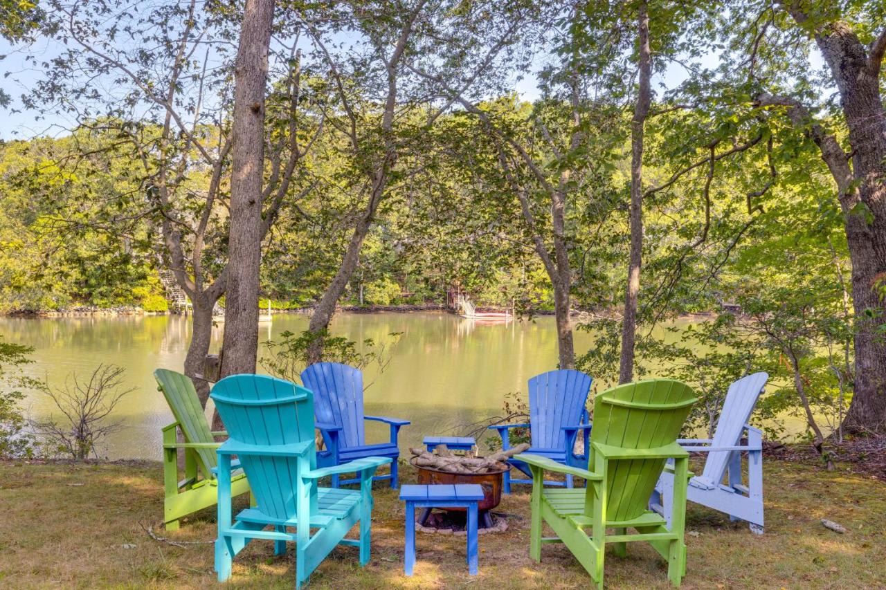 Outdoor highlights include a waterfront hot tub, kayaks and paddleboards for guest use, a fire pit with Adirondack seating, hammocks, and a large deck for dining and lounging all overlooking the water.