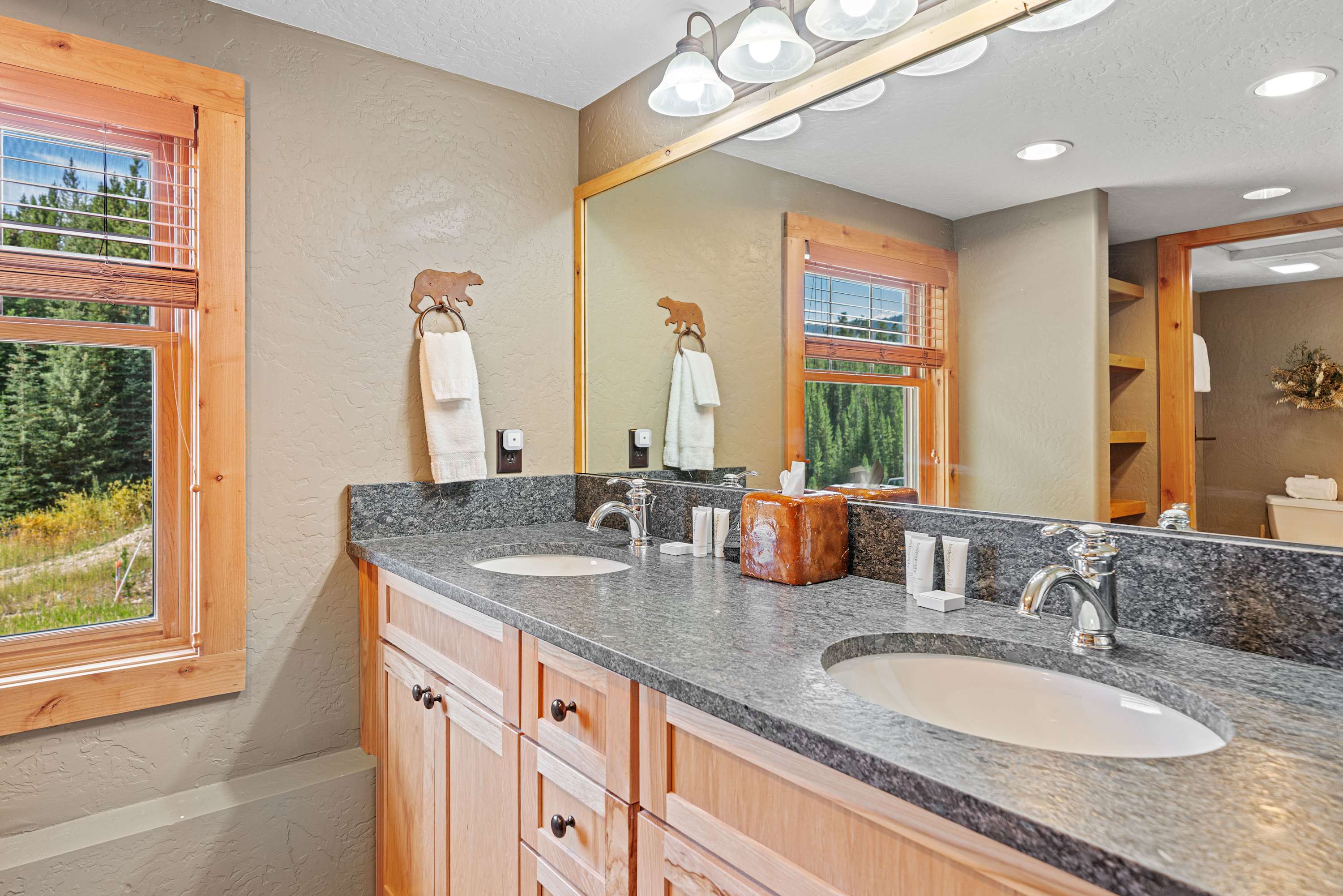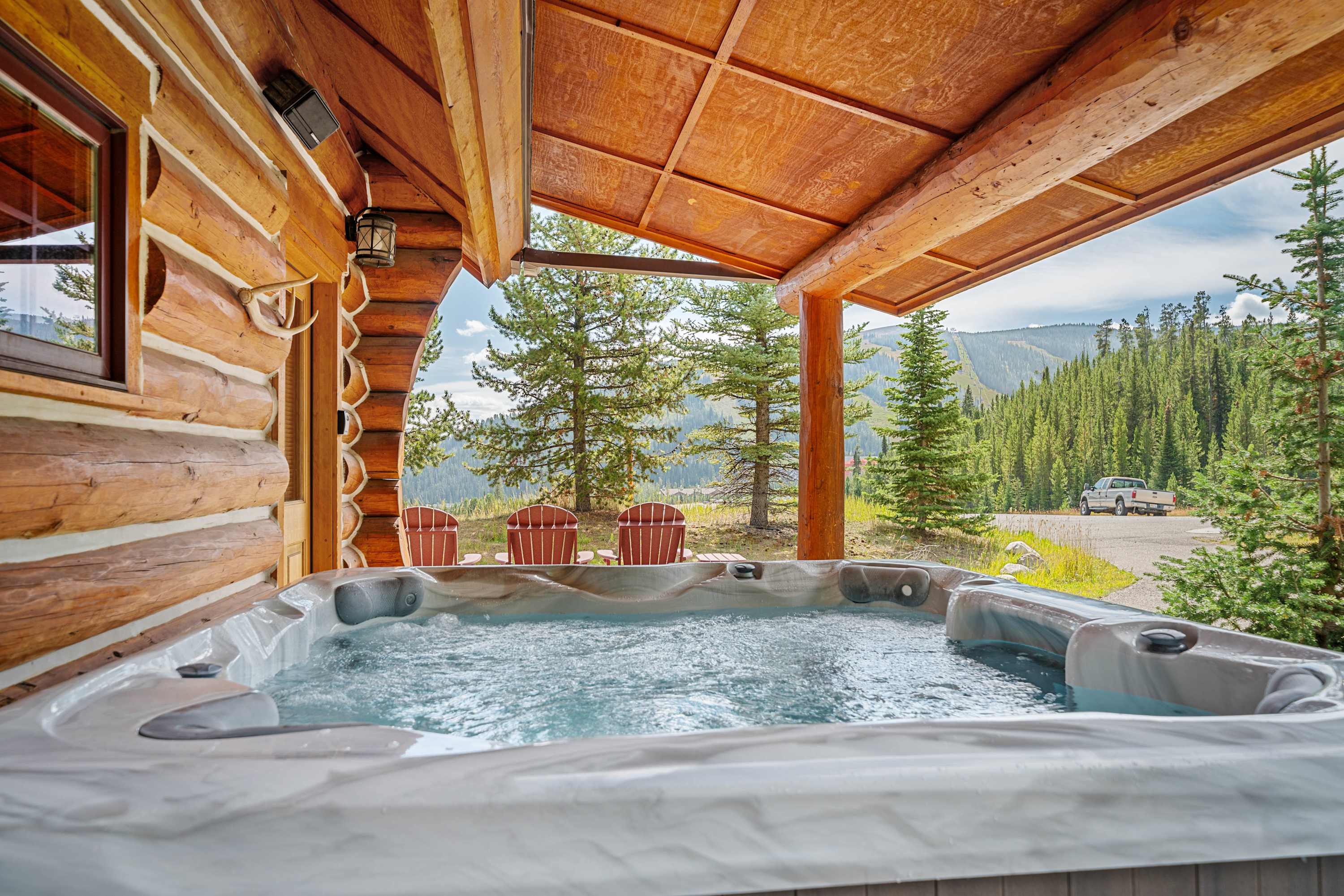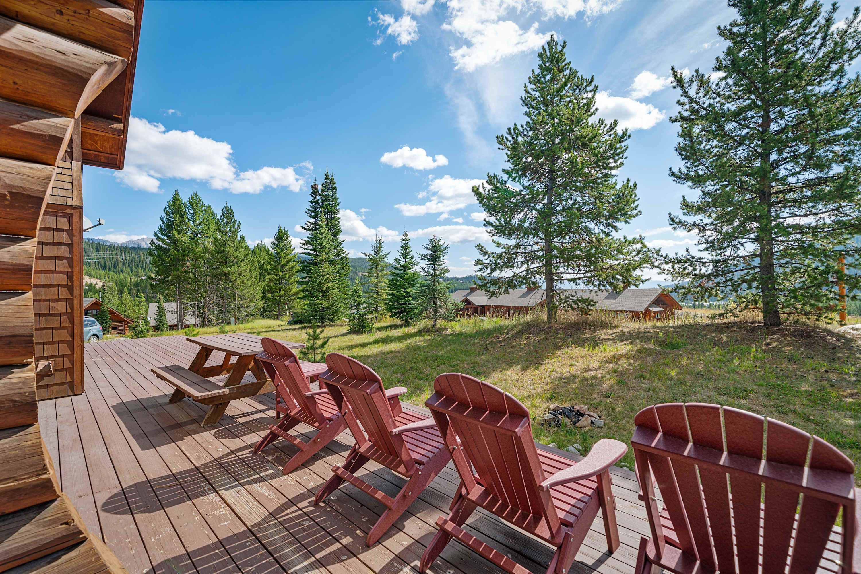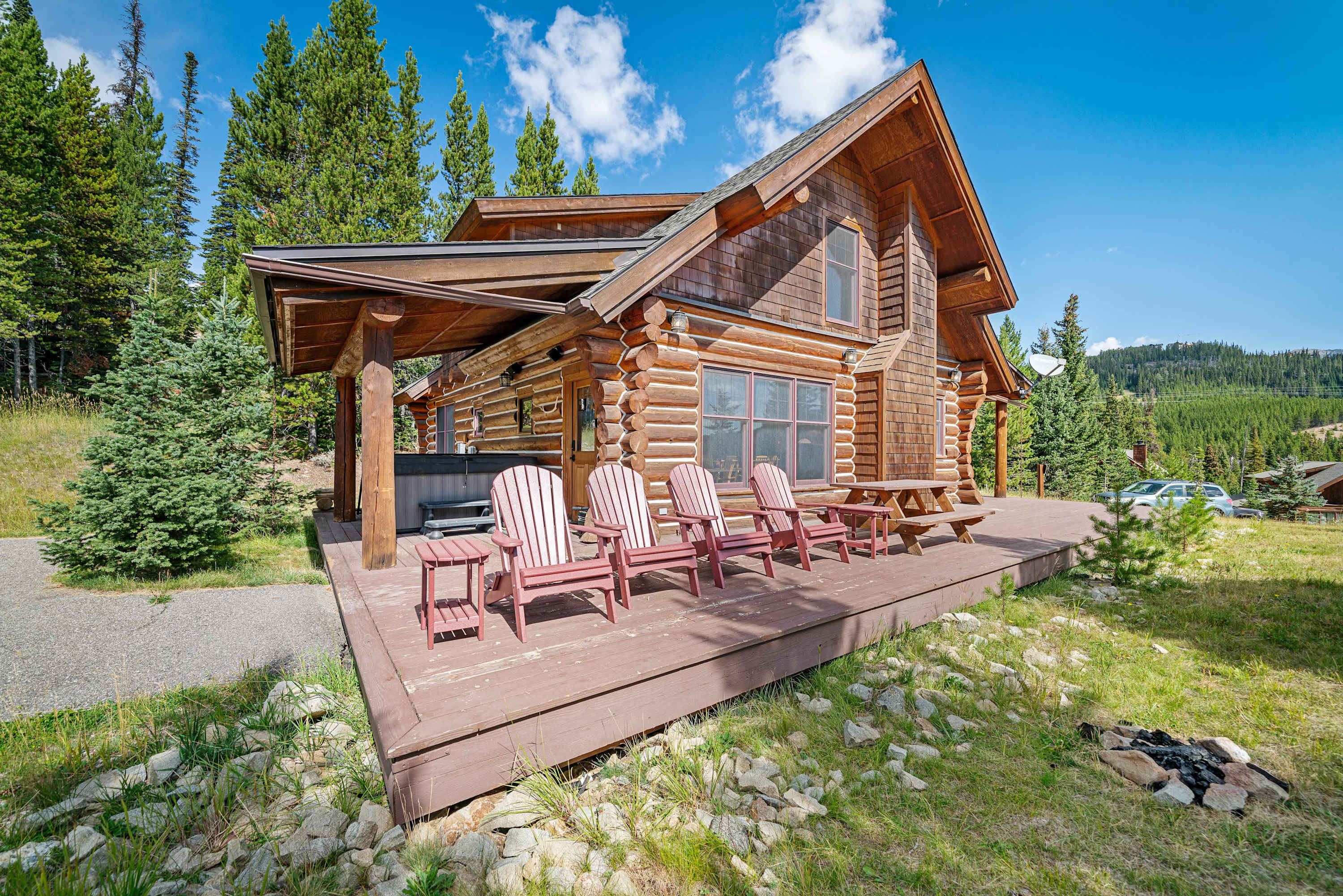 This popular Big Sky rental cabin is situated on an end lot in Powder Ridge in beautiful forest settings with views on all sides, plenty of open space to play and awesome opportunities for wildlife watching. At the end of a day of Big Sky adventures, an alfresco BBQ and starlit dip in the outdoor hot tub confirms you made the right choice booking a Powder Ridge cabin for your stay in Big Sky.